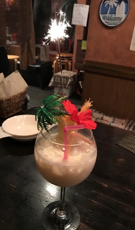 もうこのドリンク見た瞬間テンションMAX⤴その上、店員さんが火をつけてグラスの上での花火まで楽しめました。ココナッツって美味しいですよね。